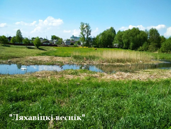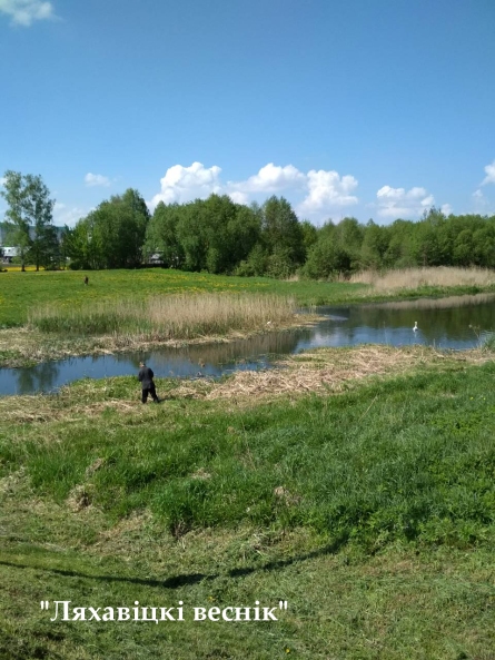 На берегу р. Ведьма в Ляховичах обкашивали траву: лебединое семейство в порядке