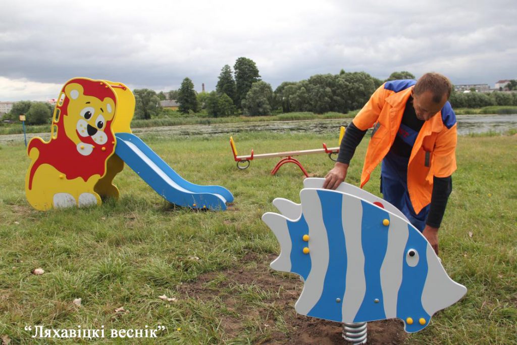 В Ляховичах на берегу реки Ведьма появилась игровая площадка. Мальчишек и девчонок приглашают горка, качели. Это очередной подарок от местных коммунальников.