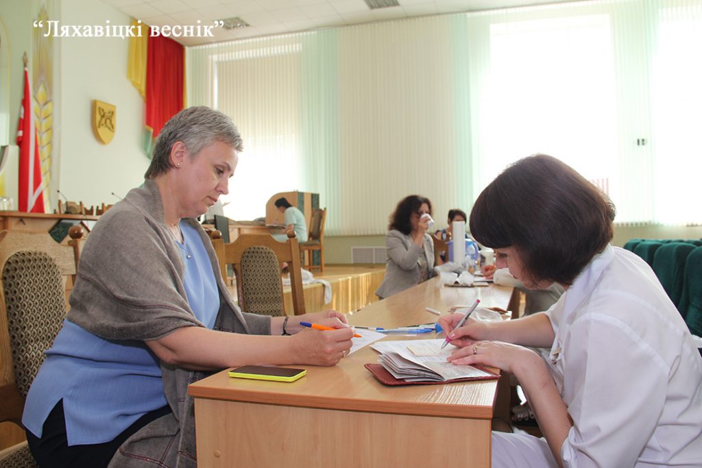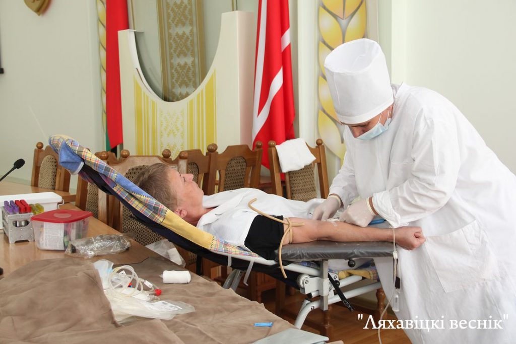 Не застаюцца ў баку ад гэтай справы і работнікі ўстаноў, арганізацый Ляхавіччыны, у тым ліку райвыканкама, якія 24 ліпеня прынялі ўдзел у акцыі бязвыплатнай здачы крыві ў выязных умовах. 15 добраахвотнікаў прайшлі нескладаную працэдуру падрыхтоўкі і здалі кроў.