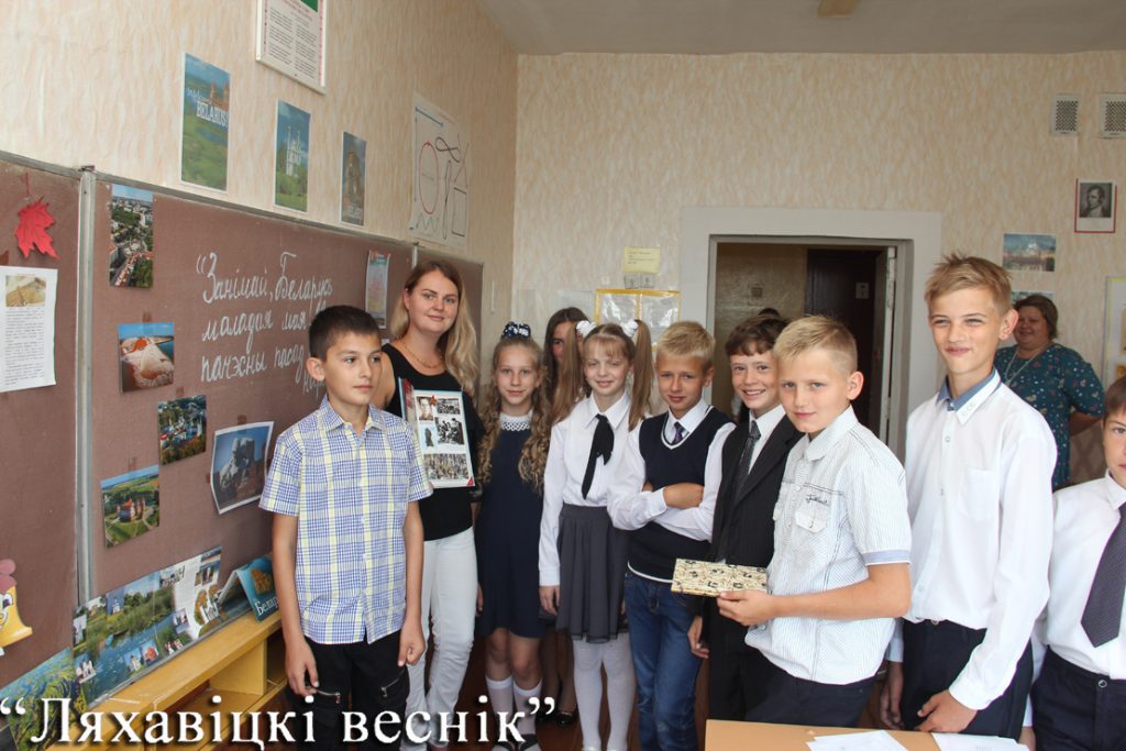 Заўтрашнім выпускнікам даручылі важную місію: суправаджаць пачаткоўцаў на іх першы ўрок «Занімай, Беларусь маладая мая, свой пачэсны пасад між народамі!», які правяла настаўніца Валянціна Кандратчык.