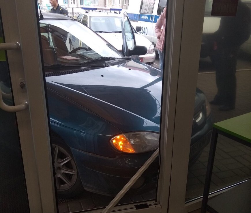 Легковушка въехала в дверь торгового центра в Ганцевичах