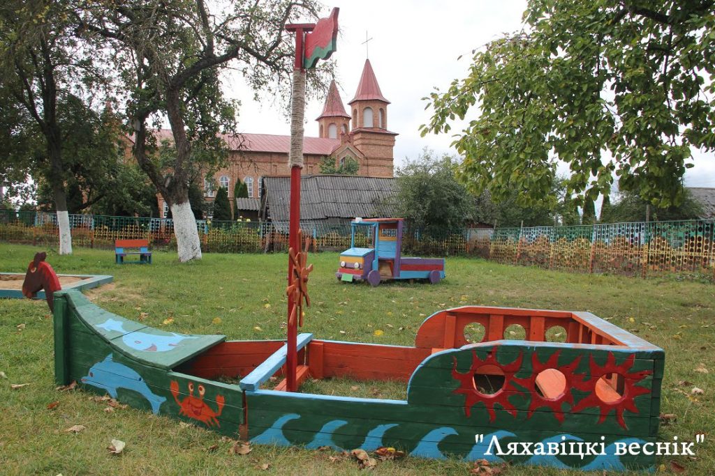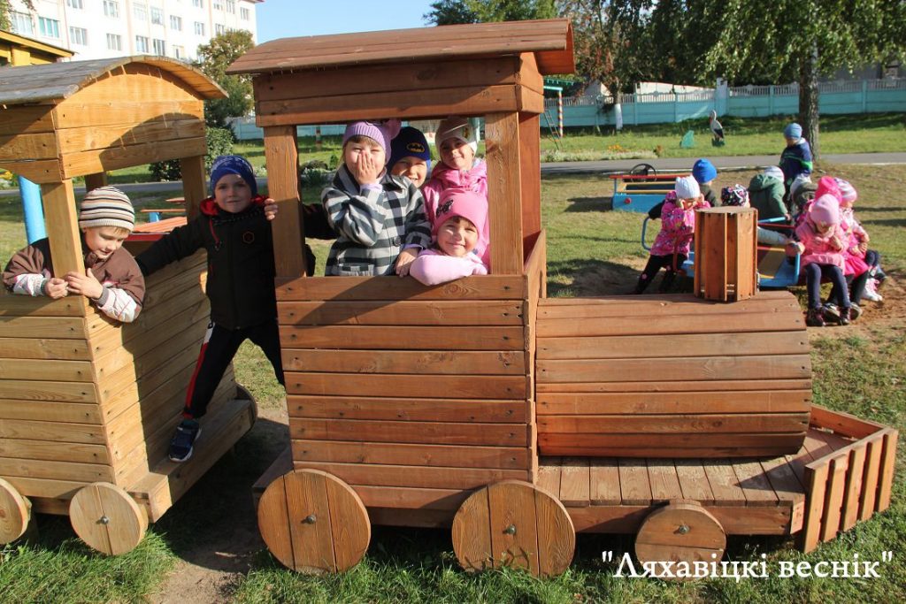В детских садах Ляховичского района созданы все условия для развития малышей. А так как основной вид деятельности у них — игра, то и соответствующему оборудованию внимание уделяется пристальное. На днях обновки установлены на площадках детского сада №2 г. Ляховичи. Мельница, поезд, качели и т.д. — всё из дерева.
