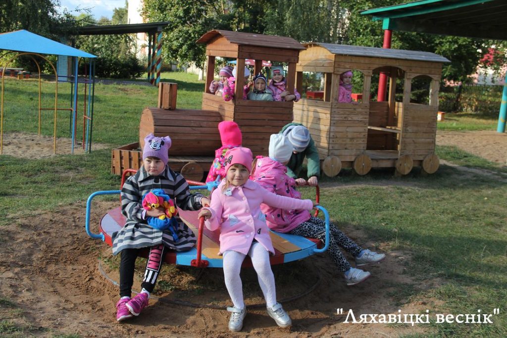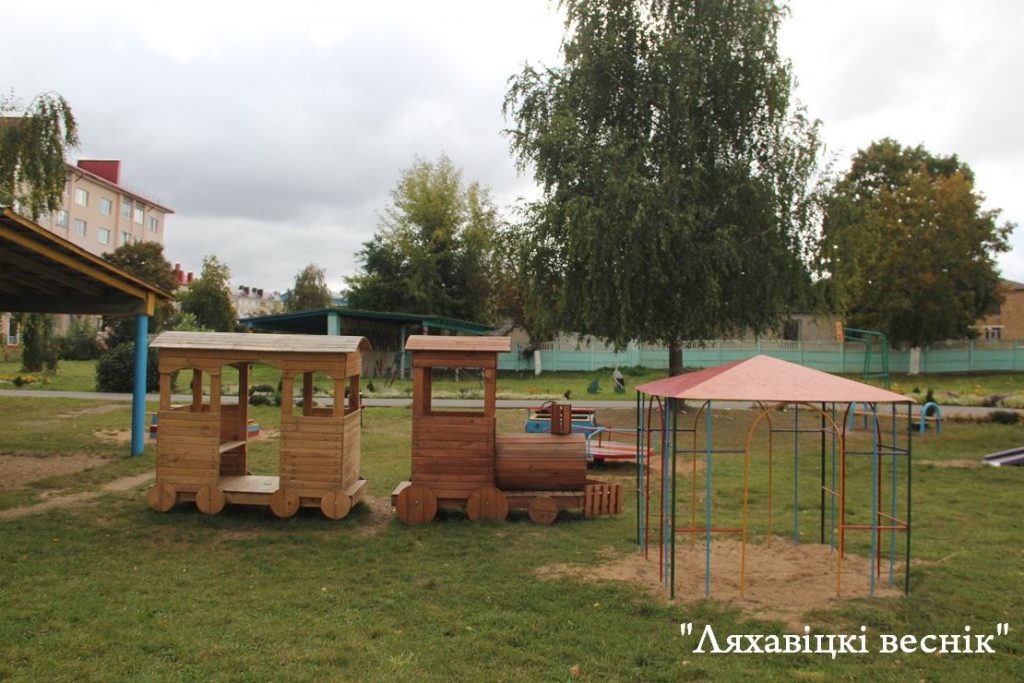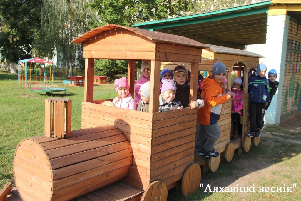 А покатаемся на поезде! В Ляховичах в детском саду №2 установлено новое игровое оборудование. Фотофакт