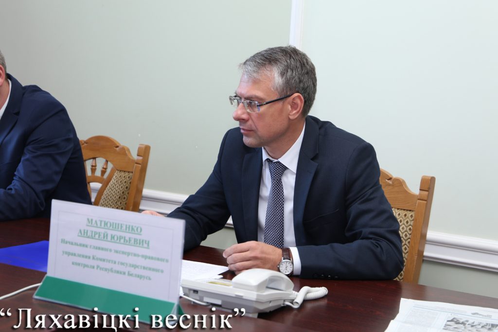 Сегодня начальник главного экспертно-правового управления Комитета государственного контроля Республики Беларусь Андрей Юрьевич Матюшенко с 11 до 12.00 провел прямую телефонную линию, а с 12 до 13.00 — личный прием жителей Ляховичского района.