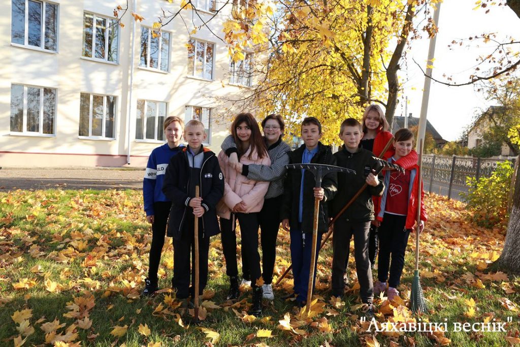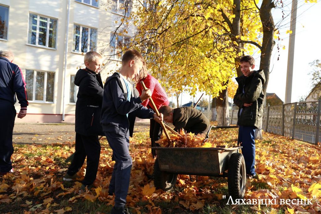 Ляховичане и любуются красотой природы, и стараются, чтобы опавшие листья не доставляли неудобств — «самолётики» убирают и коммунальники, и школьники.