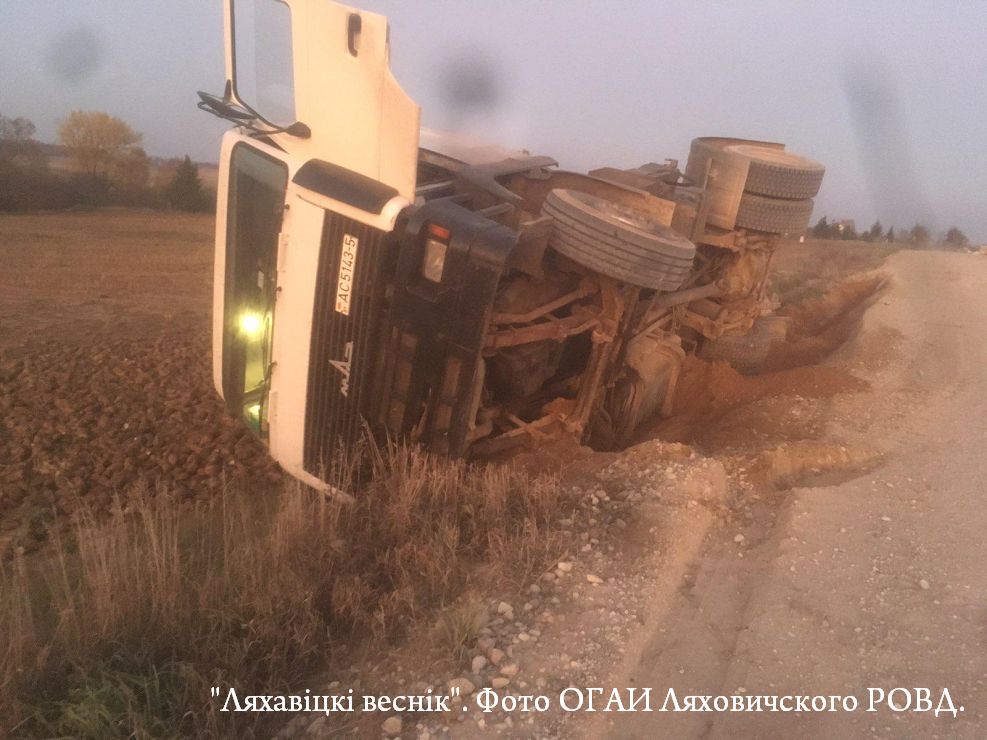 20 октября в 18.00 автомобиль МАЗ, двигаясь по автодороге «Дарево-Новосёлки» (недалеко от аг. Дарево) съехал в кювет и перевернулся.