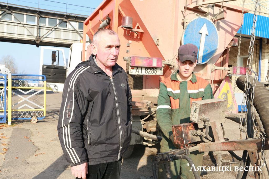 Уладзімір Казакевіч, Валерый Кабяльчук, Віктар Скрыцкі і Анатолій Жагунь – «капітаны» МАЗаў. Канстанцін Шыян кіруе ўстаноўкай СТІМ-5000. Сучасны агрэгат незаменны пры ямачным рамонце. А нядаўна набытае прычапное абсталяванне да яго забяспечыць вахту і ў халодную пару года – будзе падсыпаць пясчана-саляную сумесь і ачышчаць дарогі ад снегу.