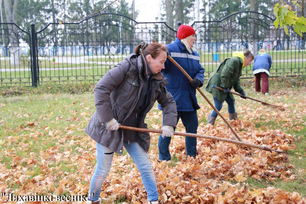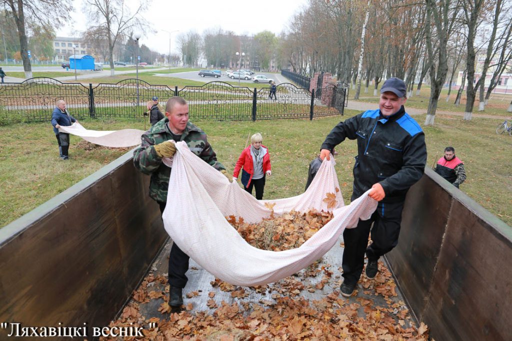 Работа кипит! В Ляховичах продолжается осенний месячник по благоустройству