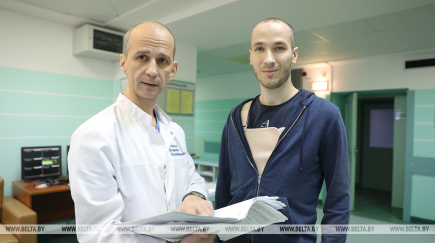 На снимке: кардиохирург РНПЦ «Кардиология» Владимир Андрущук и пациент Андрей Буйко.