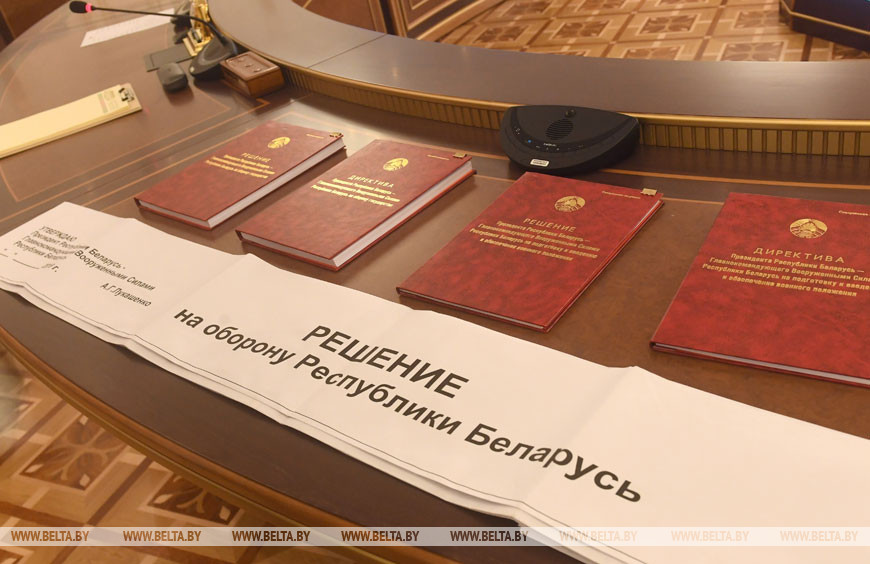 План обороны Беларуси включает нескольких документов. В течение года их анализировали в Генеральном штабе Вооруженных Сил и рассматривали на совещаниях силового блока. Основные в этом пакете — решение главнокомандующего на оборону Беларуси (графическое и текстуальное) и директива на оборону страны.