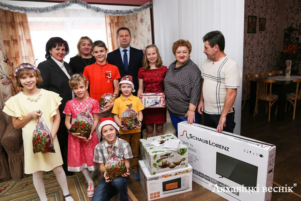 Дэпутат Палаты прадстаўнікоў Нацыянальнага сходу сёмага склікання Людміла Жалнерчык з навагоднім віншаваннем-пажаданнем і падарункамі завітала ў госці да сям’і ляхавічан Андрусевічаў. Для мамы Юліі і таты Аляксандра навагоддзе час асаблівы – шасцёра дзетак Ірына, Вікторыя, Дзмітрый, Аляксандр, Марына і Кірыл, як заўсёды, чакаюць цудаў на святы. І пачаліся яны сёлета з прыемнасцяў ад Людмілы Мікалаеўны – салодкі пачастунак і падарункі для ўсёй сям’і.