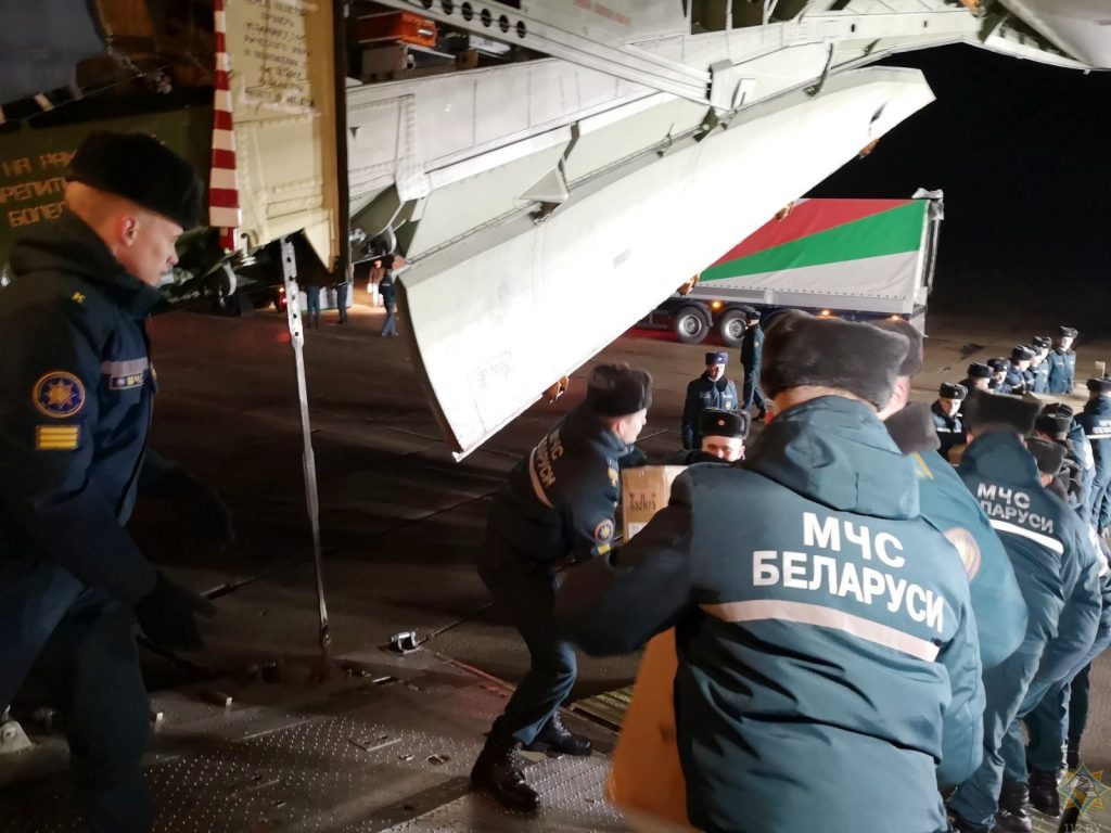 Белорусские спасатели имеют большой опыт формирования гуманитарных грузов и доставки его различным видом транспорта. За последние годы МЧС Беларуси отправило десятки тонн продуктов питания, одежды, мебели, лекарств, бытовой техники в Сирию, Украину, Вьетнам, Россию, Эквадор и другие страны. МЧС Беларуси в четвертый раз направляет гуманитарную помощь Китаю.