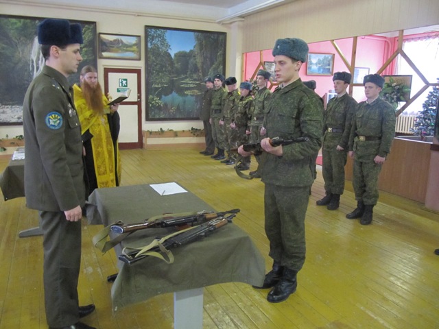 Айцец Ігар благаславіў вайскоўцаў на службу Айчыне. А пасля рытуалу ўручэння зброі быў праведзены «круглы стол» «Прадстаўляюся калектыву». Маладым байцам расказалі пра гісторыю і баявы шлях часці, а яны, у сваю чаргу, змаглі атрымаць адказы на хвалюючыя іх пытанні.