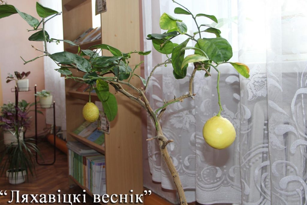 В библиотеке школы №1 г. Ляховичи не первый год плодоносит лимон. Как рассказала заведующая библиотекой Ирина Римша, выращенный лимон даже вкуснее, чем магазинный: вкус мягче, немного слаще и ароматнее.