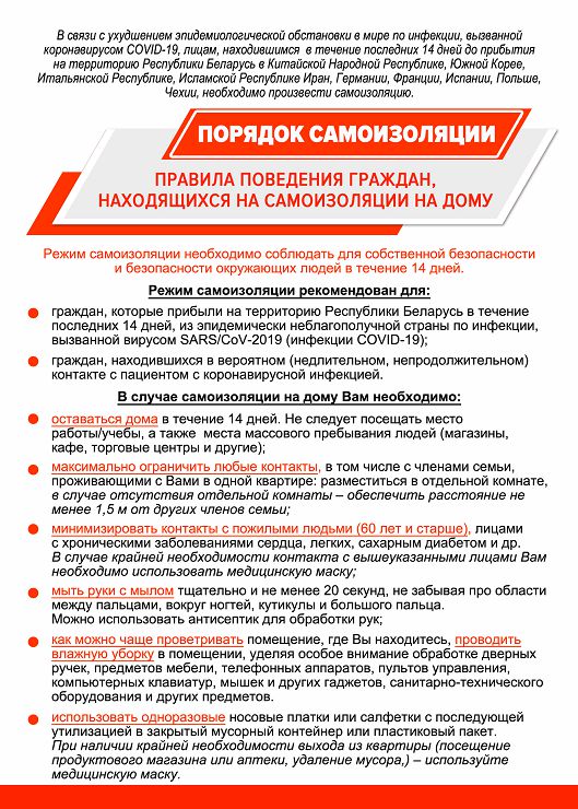 Грамадства Медыцына Правила поведения для находящихся на самоизоляции на дому 19/03/2020 223 redakcyja