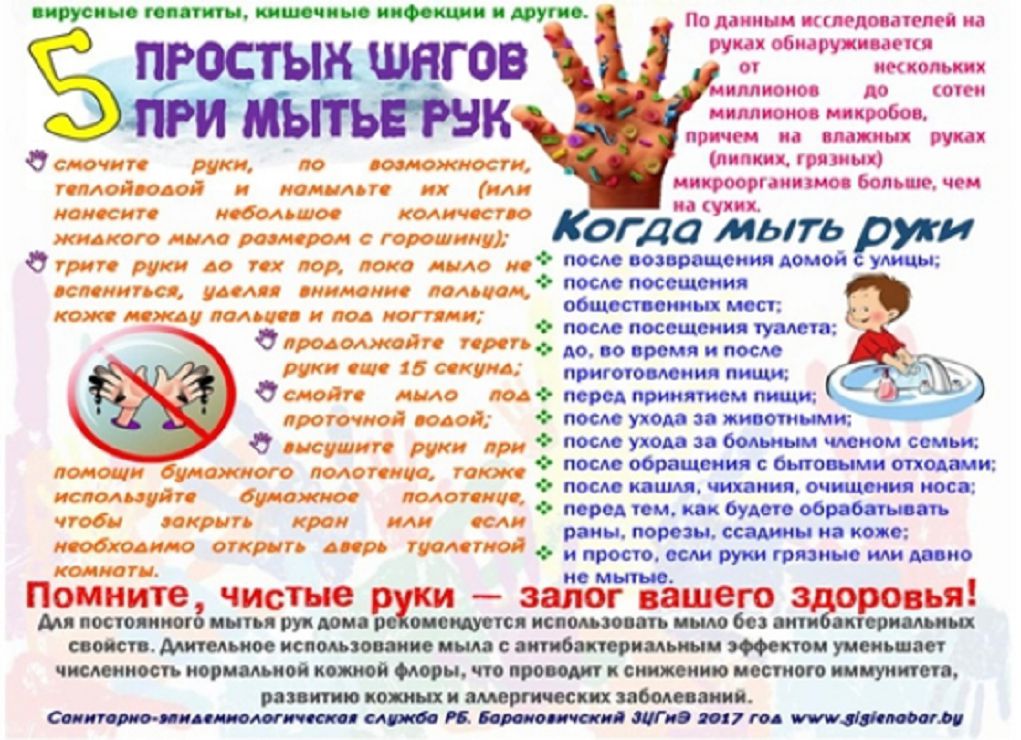 • по данным исследований, на грязных руках можно обнаружить до нескольких сотен миллионов микроорганизмов, которые вызывают грипп, вирусные гепатиты и серьезные кишечные инфекции;